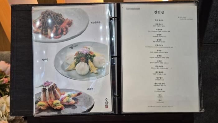 오늘 우리가 먹을 진연상 메뉴판을 미리 찍었다.