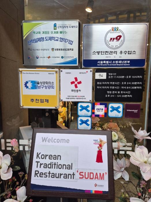 지하철 타고 오기 편하고 선정릉역 근처에 있는 <수담 한정식>으로 당첨되었다.
