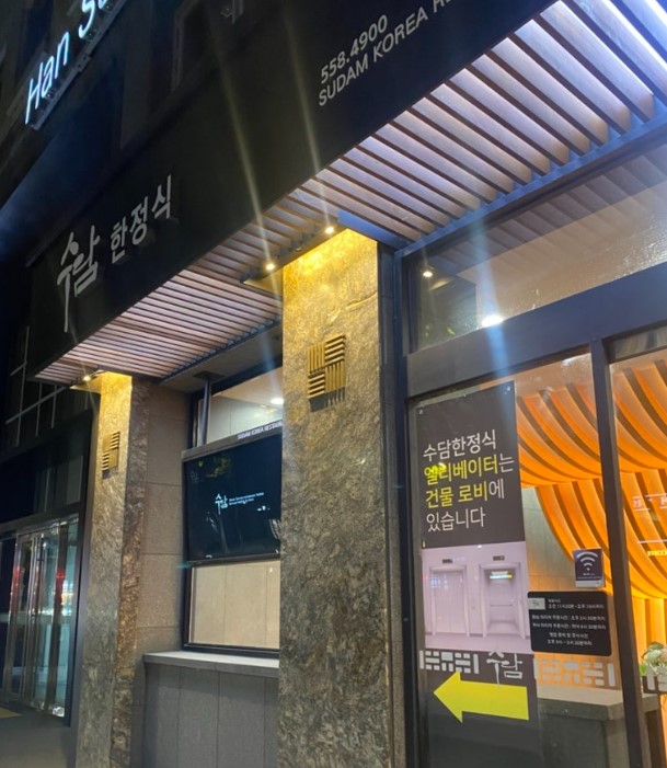 강남 수담 한정식 입구 모습입니다. 강남 수담 한정식은 칠순, 상견례, 돌잔치 등