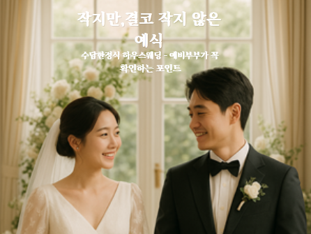 추천메뉴 이용후기 수담한정식 하우스웨딩 - 신랑신부가 꼭 확인하는 포인트 “작지만, 결코 작지 않은 예식” 수담한정식 하우스웨딩 – 예비부부가 꼭 확인하는 포인트 지난주, 강남 삼성동에서 열린 작.. 2025-10-02 고객님께서 남겨주신 '하우스웨딩' 후기입니다. 안녕하세요. 친구의 결혼식이 있었습니다. 재혼이라서 소규모로 가족친지분들과 친한 지인들만 초대하는 자리라서 .. 2025-07-11 작지만 깊은 서약 수담한정식에 올린 작지만 작지 않았던 '결혼식.. 지난주, 강남 삼성동 한복판에서특별한 작은 예식이 열렸습니다. 저희 수담한정식에서작지만 작지 않은 예식을 올리신한 .. 2025-06-22 수담한정식 하우스웨딩이 사랑받는 이유 네가지 결혼식은 평생 기억에 남을인생에서 가장 소중한 순간 중 하나입니다. 요즘은 많은 예비부부가 ‘작지만 알찬’ 소규모 웨딩을.. 2025-05-24 강남 수담한정식 스몰웨딩 후기입니다. 강남 한정식 수담에서 스몰웨딩 올렸더니, 양가 어른들 감동하셨어요 2025 봄이 다가 오면서, 웨딩홀을 찾아다니는 분들이 많이 .. 2025-05-02 고객님께서 남겨주신 '결혼식' 후기입니다. 고객님께서 남겨주신 '결혼식' 후기입니다.*출처: https://blog.naver.com/talk_ong/223436554395 ○ ● ○ ● ○ 안녕하세요,공희연입니다~.. 2024-05-17 고객님께서 남겨주신 '결혼식 피로연' 후기 입니다 고객님께서 남겨주신 '결혼식 피로연' 후기 입니다* 출처: https://blog.naver.com/crystal_8315/223006855086 ◇◆◇ [강남 모임.. 2023-08-11 하객과 비용은 줄이고...개성과 만족도는 높이고... 작지만 작지않.. 누구나 한번쯤 꿈꾸는 색다른 소규모 결혼식~ 하지만 현실적으로 적은 하객수와 적은 규모에 비해 비용은 .. 2023-02-24 1 2 3 4 5