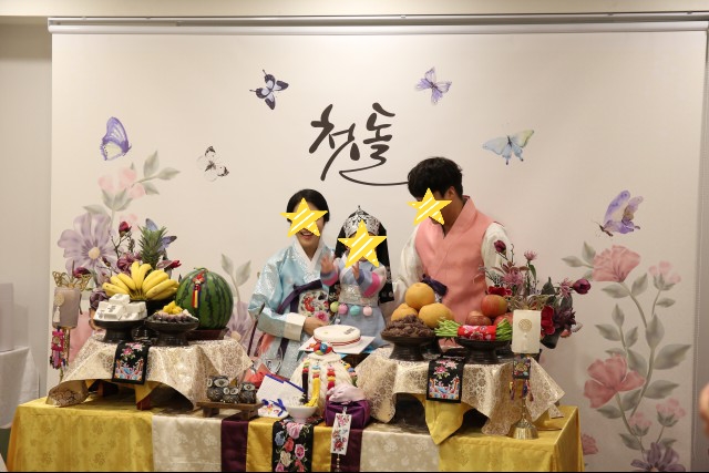 양가 할머님들의 무명실을 걸고 덕담을 해주시는데