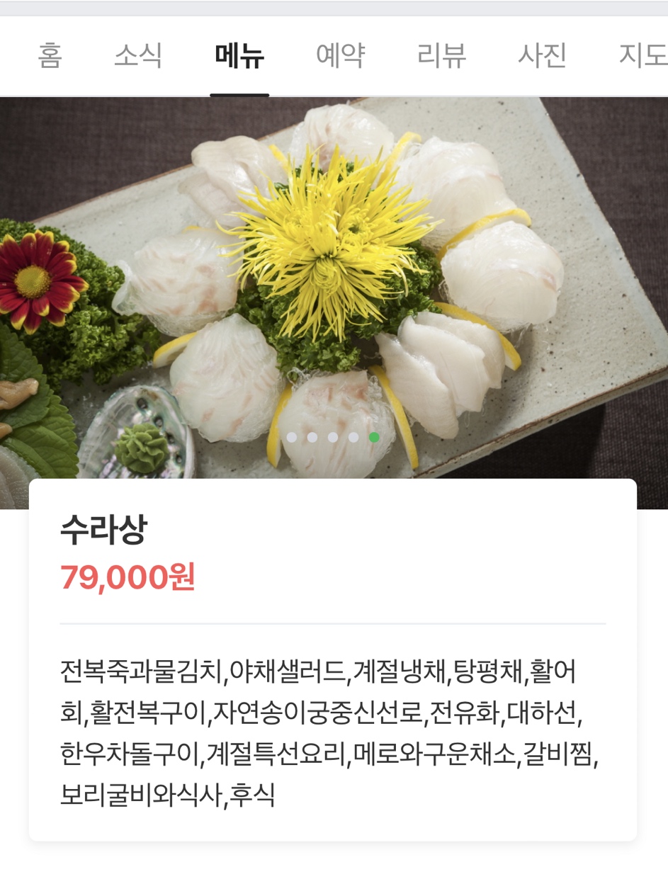 수라상 79000원 메뉴였습니다