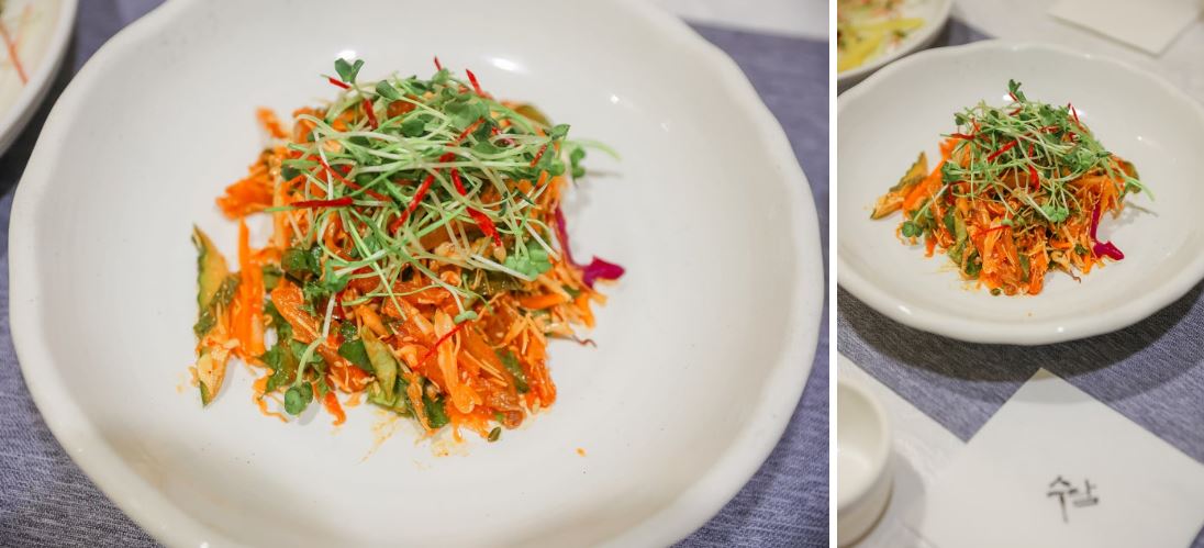 새콤한 양념이 입맛을 다시 살려줘서 코스가 길어도 느끼함이 남지 않게 잡아줍니다.