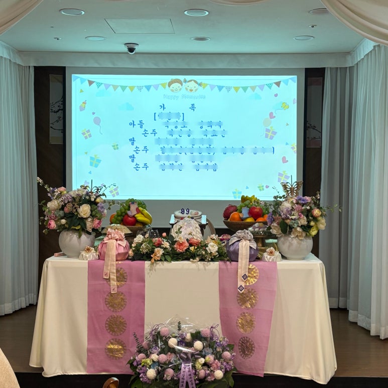 현수막, 상차림 세팅, 생신상, 케익 직접 준비 보관 가능