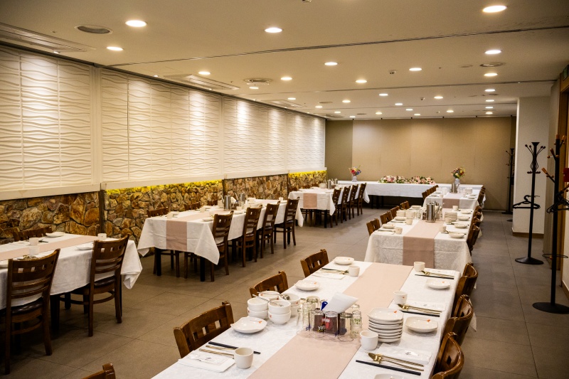 소규모 룸, 중형 룸, 대형 연회 공간으로 구분되어 있어