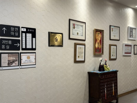 예약 확인 후에는 바로 룸으로 안내해주시는데, 이동하는 동안 한식 명인이 직접 조리하는 블루리본 선정 식당답게 화려한 수상 경력들이 눈에 띄어 더욱 기대감이 커지더라고요.